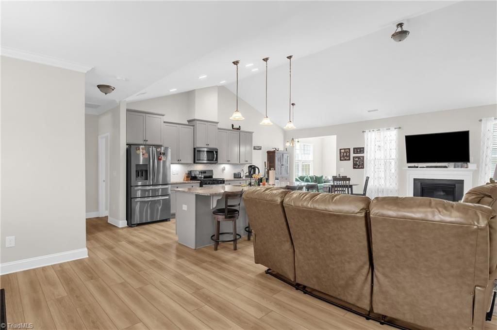 Welcome to this beautifully maintained 4 BR, 3 BA home in the stunning Maple Leaf community. Built in 2023, this thoughtfully designed home offers over 2,200 sq. ft. of open concept living, featuring a vaulted great room, spacious kitchen with large island, and bright sunroom overlooking a private patio with gazebo - perfect for entertaining or relaxing. What truly sets this home apart is its FULLY INSTALLED SOLAR SYSTEM WITH BACKUP POWER delivering little to no electricity cost - a rare and valuable feature in today's market! Split bedroom floorplan for privacy with large primary suite and walk-in closet. Bonus room includes full bath which is ideal for guests or home office. Widened driveway and enhanced curb appeal! Reverse osmosis water filtration system! Enjoy the benefits of newer construction without the wait! Convenient location in King with easy access to Winston-Salem. Comfort and efficiency await!