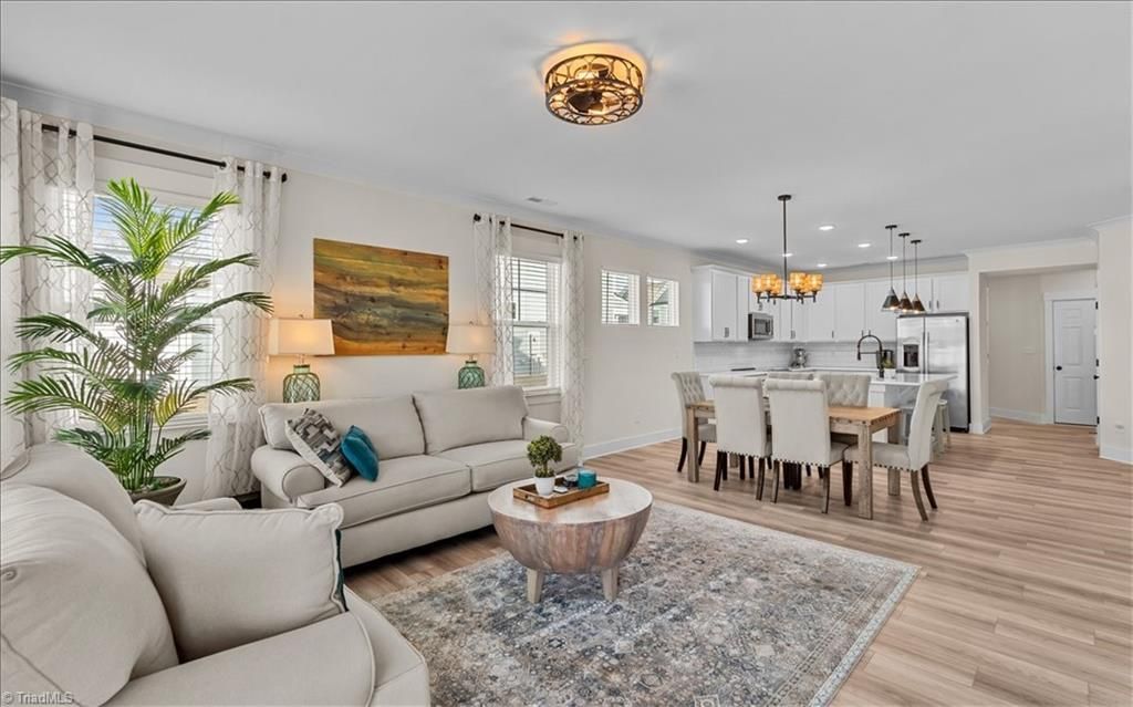 Welcome to this beautifully designed 2-story townhome in Harbor Crossing, built in 2024 and offering 4 bedrooms and 2.5 baths. The exterior showcases modern curb appeal with a 2-car attached garage. Inside, enjoy an open-concept layout featuring a spacious living area with fireplace that flows seamlessly into the kitchen, complete with white cabinetry, tile backsplash, and pantry. The main-level primary suite offers convenience and comfort with an ensuite bath featuring a tiled shower. Upstairs includes three additional bedrooms, a full hall bath, and a versatile great room/family spaceâ??perfect for entertaining, work, or relaxation. Step outside to a private fenced patio area, ideal for outdoor enjoyment. Located in a desirable Greensboro community with easy access to nearby amenities.