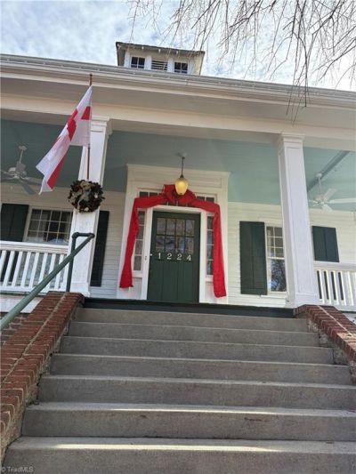 1224 Glade Street (The Carroll-Trivette House 1910) located in the West End Historic District. Close to all of your favorites ..... Hanes Park, Central Y, Grace Court, restaurants and shopping. Take in the view from a gorgeous wraparound front porch. High ceilings, generous room sizes, 3 fireplaces with gas coals, handsome dining room, living room and updated large cook's kitchen. Primary bedroom suite has tiled steam shower, heated tile floor with spacious walk in closet and permanent strairs leading to floored attic. Easy access to rear alley, detached 2-car garage and additional parking spaces.