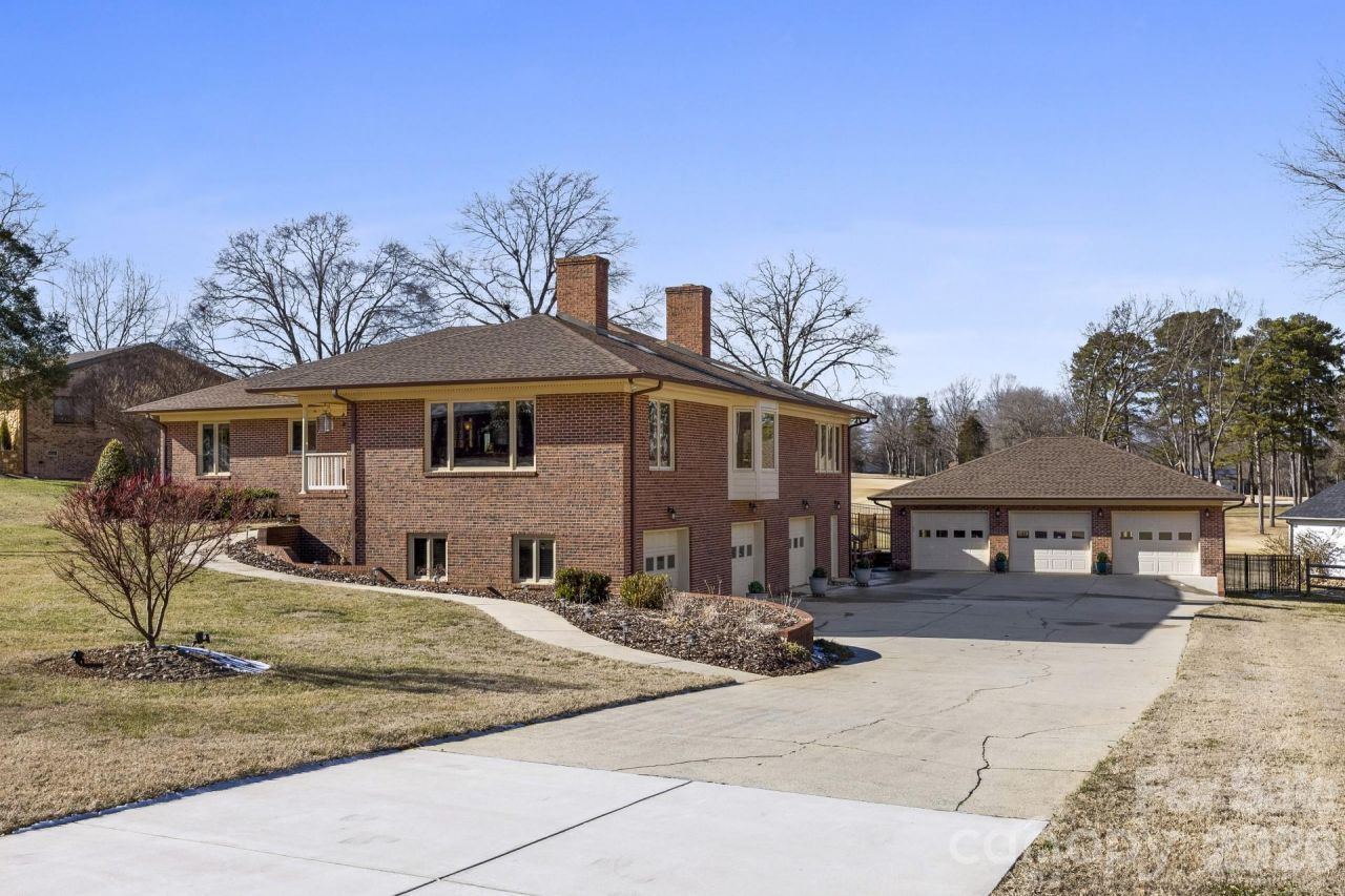 Where panoramic golf course views, luxury living, and a carenthusiast's dream garage come together in one unforgettable property. Remodelcompleted in 2025, this home sits on the 10th fairway of Pine Island Country Club. Open,light-filled main level features a vaulted family room with gas fireplace and windowsspanning nearly three sides, flowing into the kitchen. Primary suite offers vaulted ceilings,remote skylights, and updated bath with rain shower and soaking tub. Includes 3 oversizedattached garage bays plus separate 3-bay garage with new HVAC and three lifts availablefor purchase. Finished lower level offers in-law suite with bedroom, living area, kitchenette,full bath, walk-in closet, and storage. 3 New roofs, 3-ton HVAC, skylights, fireplaces,flooring, central vacuum, natural gas generator, and Culligan system. Convenient to majorCharlotte corridors, shopping, dining, and commuting.