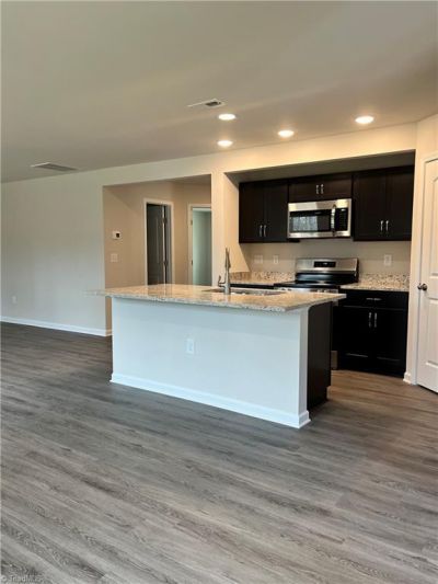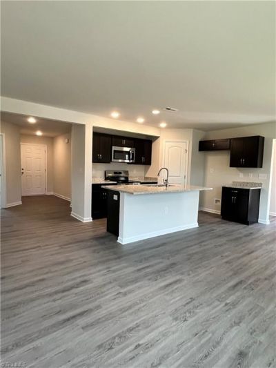 New construction in established neighborhood in Lexington! Over 2200 sq ft featuring 4 bedrooms, 3 full bathrooms, and a bonus/flex room. Open concept design in the living room, dining area, and kitchen. The kitchen is equipped with granite countertops, an island, and stainless steel appliances. The spacious primary bedroom includes vaulted ceiling and two closets. The primary bathroom offers a double vanity along with a separate shower and tub. Covered rear porch and no HOA.