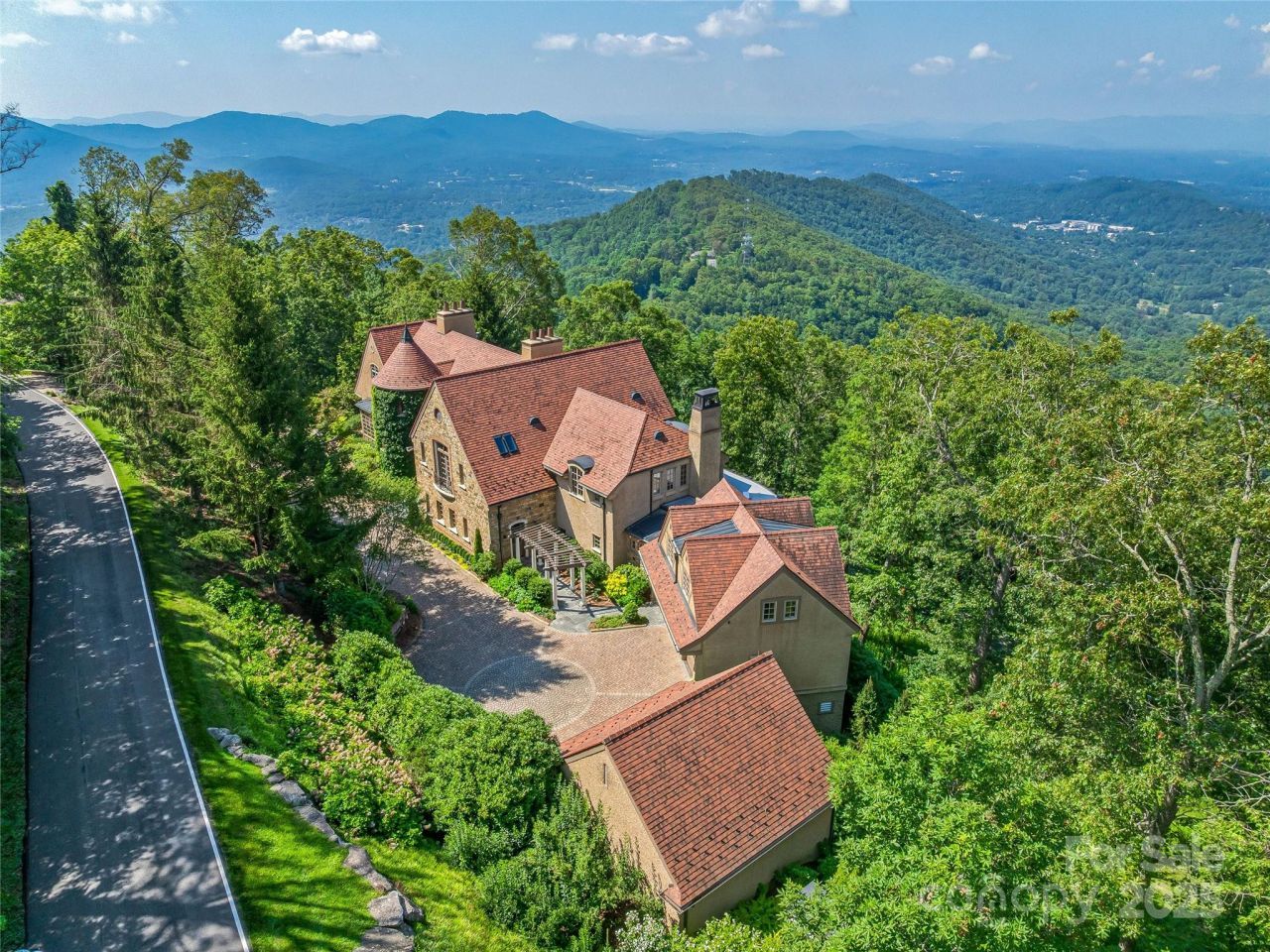 This luxurious European-inspired home has breathtaking views of the Blue Ridge Mountains and is ideally located just miles from downtown Asheville. Meticulous craftsmanship and opulent finishes are showcased throughout, including Italian limestone fireplaces, custom ironwork, and a striking Verdi Fire granite kitchen island. Elegant flooring of quarter-sawn oak, marble, and Jerusalem limestone enhances the home's sophisticated ambiance.Designed for both comfort and grandeur, the home offers seamless spaces for private relaxation and lavish entertaining. The primary suite features a private balcony with panoramic mountain views, while the en-suite bathroom exudes elegance with marble floors and intricate medallion accents. A private grotto with a poured gunite hot tub and cascading waterfall creates a serene, spa-like retreat. Wine connoisseurs will appreciate the climate-controlled wine cellar, and film lovers can indulge in the custom home theater with luxurious leather seating.