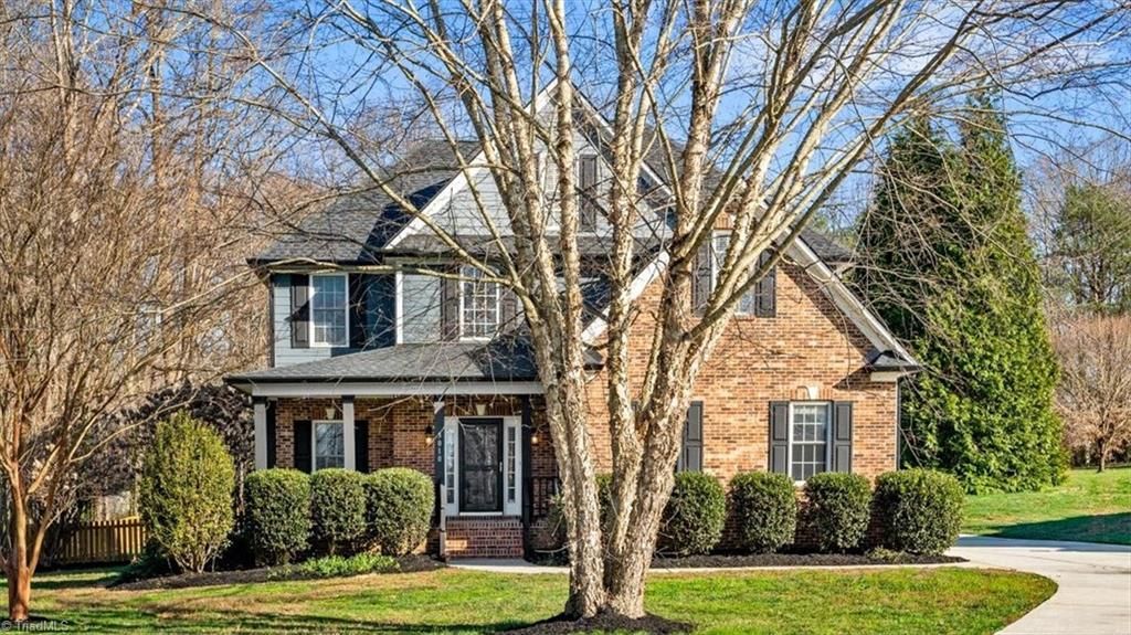 Beautiful 2-story home in Wellington in Browns Summit situated on approximately 0.94± acres and served by Northern Schools. The front exterior features classic brick and siding, a covered front porch, new roof with transferable warranty, new gutters, new garage door, and refreshed landscaping with fresh mulch. Inside offers 4 bedrooms and 2.5 baths with new carpet, hardwood flooring, and a living room with fireplace. The kitchen includes stainless steel appliances???dishwasher, refrigerator, microwave, and stove to convey. The spacious primary suite features tray ceilings, two closets, and an ensuite bath with double vanity. Enjoy a large deck and patio, fully fenced backyard, and additional space beyond the fence. Neighborhood amenities include a pool, upgraded fitness center, and clubhouse available for resident use and events.