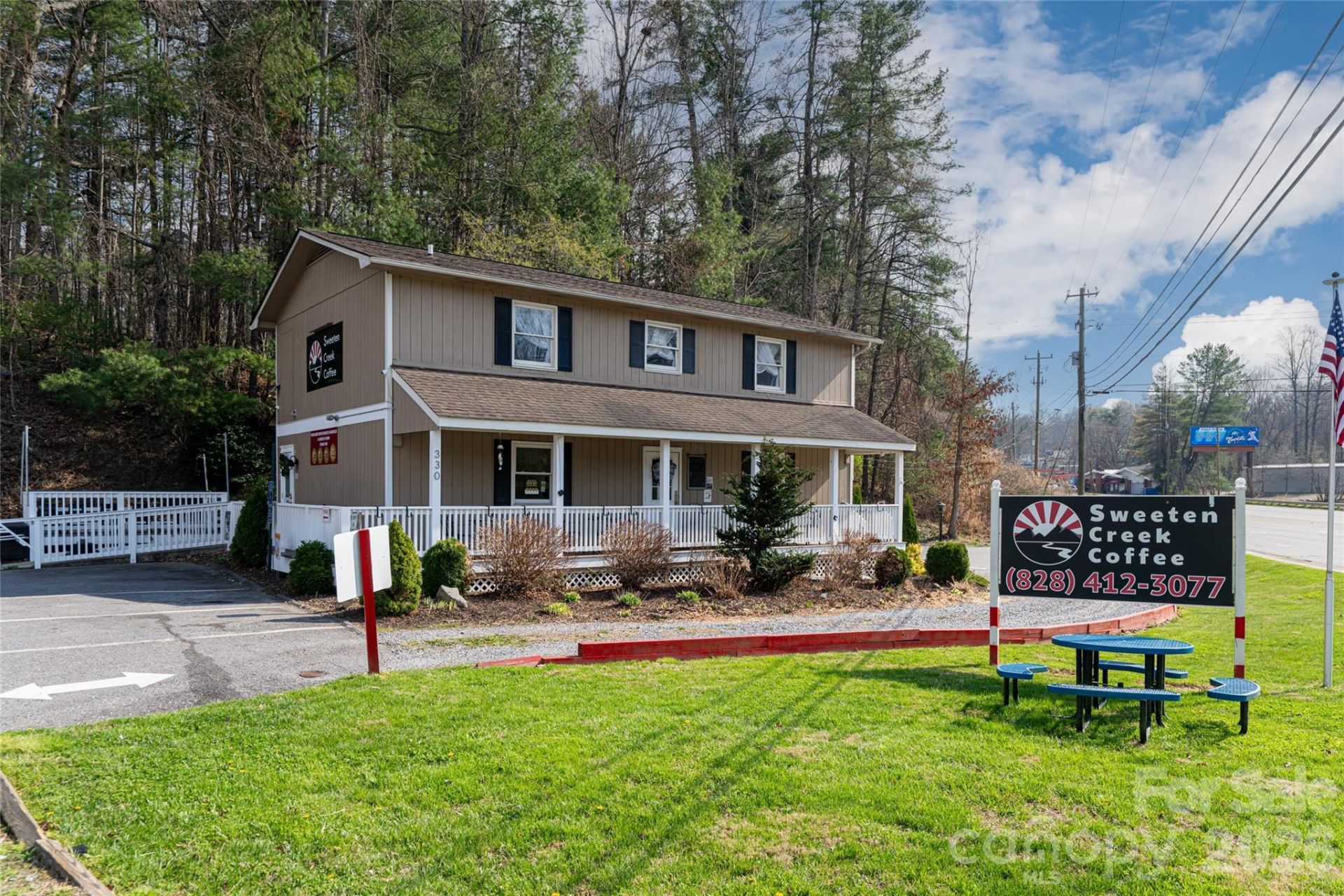 Just off Interstate 40 at Exit 51 along highly traveled Sweeten Creek Road, this mixed-use commercial property presents a compelling investment opportunity in one of South Asheville's active growth corridors. With exposure to approximately 30,000 vehicles per day, the site benefits from strong visibility, consistent traffic patterns, and proximity to key employment and distribution hubs. The property is anchored by a fully built-out ground-level retail space operating as a coffee shop, offering flexibility for a variety of commercial uses, including food and beverage, office or service-oriented concepts. The existing improvements, equipment, furnishings, and fixtures provide a turnkey foundation that can be leveraged or repositioned depending on an investor's vision. Above, a separately accessed two-bedroom, one-bath residential unit introduces a valuable income-producing component, currently utilized as a short-term rental. This upper-level space enhances the asset's mixed-use appeal, offering the potential for continued rental income, long-term tenancy, or live/work functionality. Additional site features include approximately 25 dedicated parking spaces and an on-site billboard generating supplemental revenue, further strengthening the property's diversified income profile. Its strategic location near Biltmore Village, major transportation routes, and regional employers supports performance and future upside. An exceptional opportunity for investors seeking a flexible mixed-use asset with multiple income streams, strong fundamentals and long-term positioning in the South Asheville market.