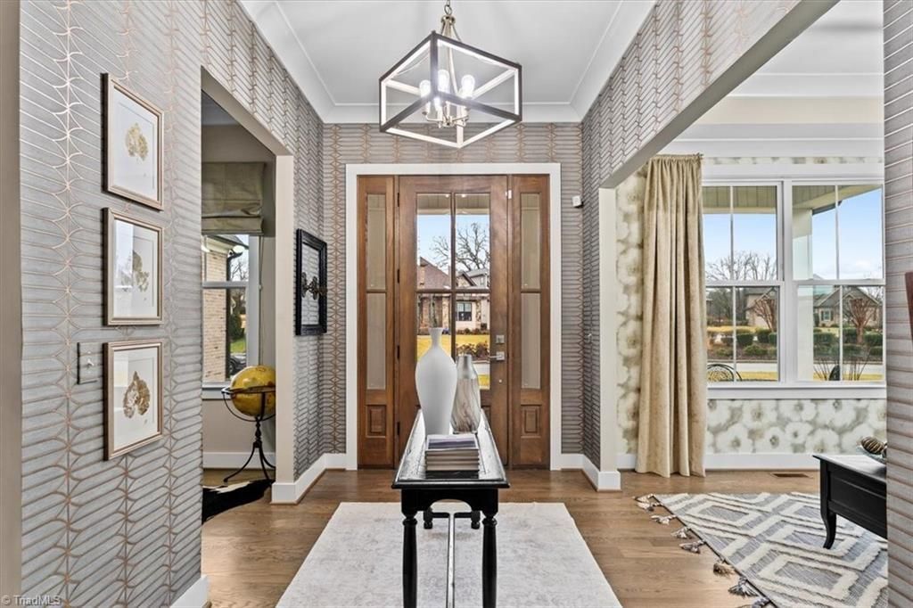 Tucked away in Grandover in the beautiful subdivision of Griffins Gate this home is better than new. Everything is already done. Covered front porch. Open floor plan w/ beautiful entry & great lighting throughout. The owners thoughtfully upgraded this chef's kitchen to included a huge breakfast bar w/ gorgeous quartz tops, extra cabinetry, 6 burner gas stove & double ovens & pantry. Large primary suite on the main level w/ luxury bathroom that includes soaking tub & separate shower. Additional 2nd bedroom on main floor w/full bath. Office on main level. This home is meant for entertaining family & friends as the kitchen flows right into the Great room that has gas logs & built-in shelves. Walk out onto the covered porch & enjoy the stone patio perfect for a fire-pit gathering. 3 car garage. Hardwoods throughout. Upstairs 2 HUGE bedrooms & bonus that currently being used as a 5th bedroom. Large walk-in attic. Sealed crawlspace. Enjoy Grandover w/ pool, pickleball & tennis.