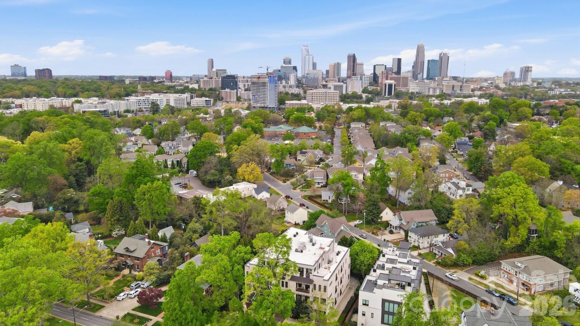 Step into sophisticated city living in the heart of Myers Park, ideally positioned along prestigious Queens Road. Queens Six Two Six is an intimate, boutique building offering just 12 private residences?designed for those who appreciate both exclusivity and convenience. This elegant condominium is perfectly suited for those seeking a refined lifestyle with effortless access to the best of Charlotte. Just a short 15-minute walk to both Novant and Atrium hospitals, it's an exceptional choice for medical professionals or anyone wanting to be close to the city's major employment hubs. Inside, timeless design meets modern comfort with 10-foot ceilings, rich hardwood floors, plantation shutters, and detailed moldings throughout. The spacious open floor plan is designed for both entertaining and everyday living, featuring a large living room with a beautiful fireplace and a wall of windows that fills the space with natural light. The adjoining dining area and crisp white kitchen with a generous island create a seamless flow for hosting. French doors open to a 24-foot covered terrace, where you can unwind while taking in Charlotte skyline views?your own private retreat in the city. The primary suite is a true sanctuary, complete with a custom walk-in closet and direct terrace access. And a versatile flex space offers the perfect setting for a home office, library, or stylish lounge area.Surrounded by grand oak tree-lined streets and just moments from Uptown, Elizabeth, Dilworth, and South End, this location places dining, shopping, and green spaces like Latta and Freedom Parks right at your fingertips.Additional features include two secured parking spaces in a gated garage and the ease of low-maintenance luxury living.