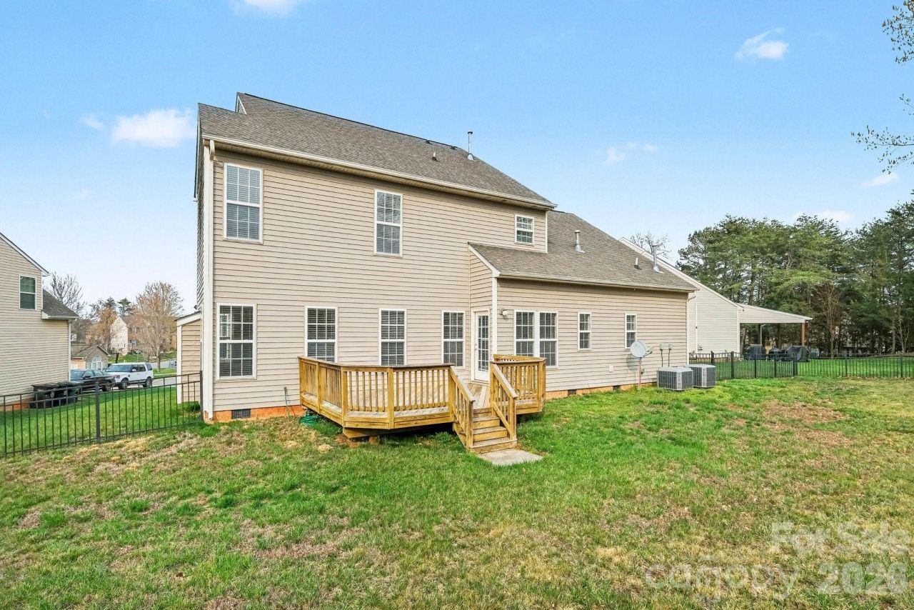 Welcome home to this fabulous, spacious, yet comfortable 3-story home in an amenity rich neighborhood, The Mills @ Rocky River. With neighborhood elementary and middle schools literally located in-the-neighborhood, and your very own fuel station and convenience store located as you enter The Mills, you'll know you've picked one of Cabarrus County's favorite communities. Enjoy resort-style neighborhood amenities including a pool, clubhouse, fitness center, and playground. This home sits proudly in a beautiful Hometown USA cul-de-sac and includes a lovely and spacious rear yard with a fabulous deck for your summer grilling. The garage is over-sized and includes a utility sink. Inside, you will find an open first level floorplan that has two formal rooms, one with french doors for a fabulous office. There is abundant recessed lighting in this home. And the great room is spacious, with a cozy feel including a gas log fireplace. Level 2 features roomy bedroom spaces and a fabulous owner's suite with dual walk-in closets and an attached bath. Don't miss the fresh paint and brand new carpet! Bedroom 4 functions as a flexible rec room or bonus space. And level three is a space unto itself with the ability to be bedroom 5, a guest suite, or a recreation room with a full bathroom. HVAC was replaced in 2022 and includes 4 thermostats to help you zone your heating and cooling needs. Currently assigned to the highly rated Hickory Ridge High School in Harrisburg, this home is minutes from fabulous parks and abundant food and shopping options in Harrisburg or Concord. Just minutes from I-485 to get you where you need to go in metro Charlotte.