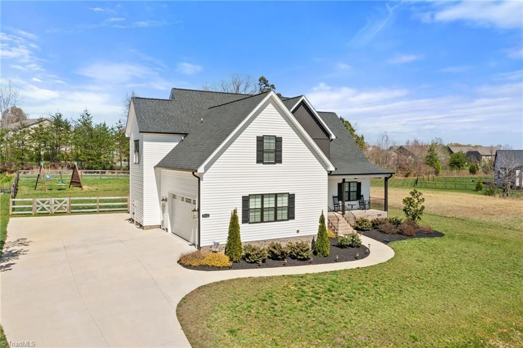 Seller offering $5,000 incentive w/ Preferred Lender! Bring Your Offers! Welcome home to this stunning custom-built beauty in the beloved Treeline Trails community???where luxury, comfort, and thoughtful design shine. Situated on .69 acres w/ a rural feel but convenient traveling to Kernersville, Greensboro, and Winston-Salem. Upon entering, rich hardwood floors lead into the heart of the home: a dream kitchen featuring quartz countertops, , built in bar/coffee area, gas range, stacked oven & microwave, oversized island, and pot filler???perfect for gathering & entertaining. The main-level primary suite offers a spa-like bath w/ a large step-in shower, double vanity, & makeup area. Upstairs includes two spacious bedrooms & a generous bonus room w/ full bath access???ideal for a 4th bedroom, office, or flex space for hobbies & activities. Enjoy a screened-in porch overlooking a fenced yard with swing set, ample parking, oversized laundry and pantry, and a large attic for plenty of storage!