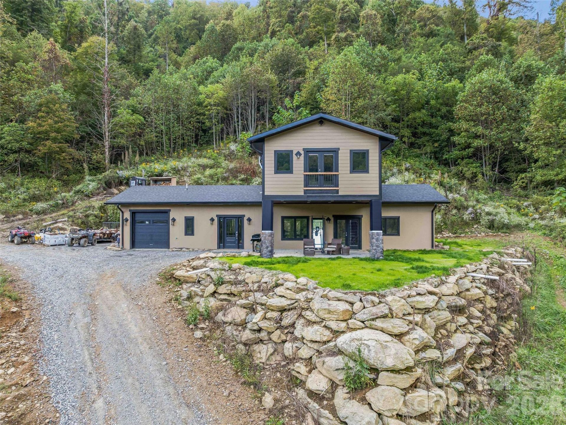 Discover 100+ acres of privacy, freedom, and opportunity at 945 Roaring Fork Road in Hot Springs, NC. Perfect for those seeking off-grid living, sustainable farming, or a private mountain retreat, this unique property sits on part of the Pisgah National Forest and includes part of Cud Gap. With abundant wildlife, natural springs, blackberries, and miles of trails, it's ideal for hiking, mountain biking, 4-wheeling, hunting, foraging, or simply enjoying the beauty of nature. At the heart of the property is a custom-built home with a jacuzzi and superior foundation walls, heated floors, tiled showers, deep soaking tub, granite countertops, stainless steel appliances, a 100-gallon water heater with boiler hookup, and spray foam insulation. Mountain views enhance the comfort and design, while a garage adds convenience. Multiple additional dwellings and structures expand the possibilities: A tiny container home with deck, granite countertops, and mini split. Mobile home with outdoor fireplace (personal property). Climate-controlled greenhouse with radiant heat, hot water heater, and fan. Root cellar, garden area, two chicken coops, goat barns, plus a pond and creek with beach area. For work, storage, or creative projects, the property offers: Shop/Garage #1 with 200-amp electric panel. Shop/Storage #2 with a wood stove, two storage containers, and a hydroelectric system. Infrastructure supports expansion, including a future build site with slab, roughed-in plumbing, and additional septic, plus other potential build areas. This property is perfectly suited for a family compound, homestead, farm, or nature lover's escape. 100 acres ensure lasting privacy to live sustainably, play freely, and create your legacy on this one-of-a-kind mountain property.